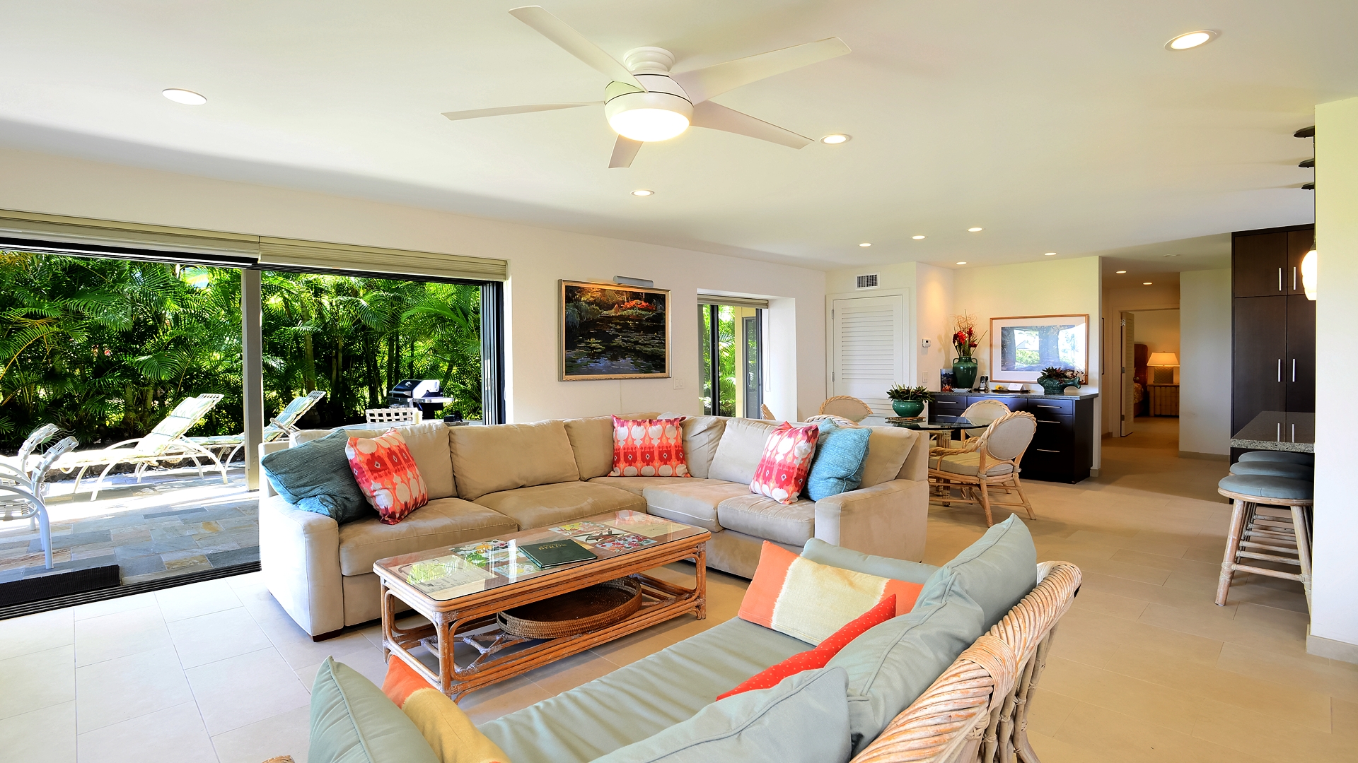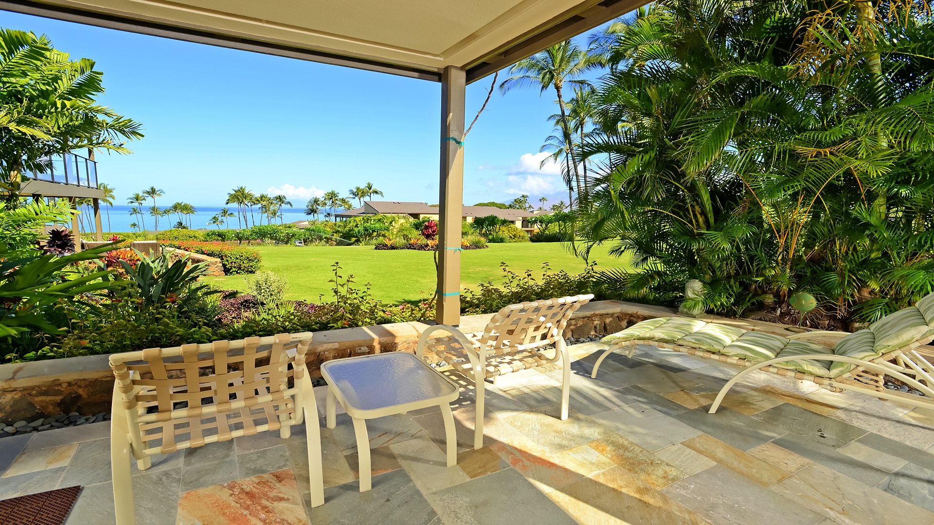 This impressive 2 Bdrm+2 Bath vacation condominium can accommodate up to 6 guests and has an expansive view across the lawn to the azure Pacific Ocean.